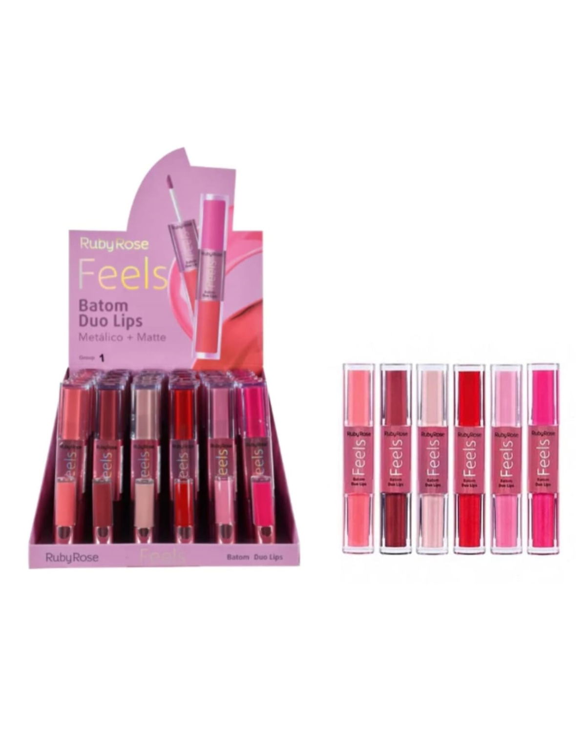LABIAL LIQUIDO 2 EN 1 METALICO + MATTE FEELS RUBY ROSE - HB-8255